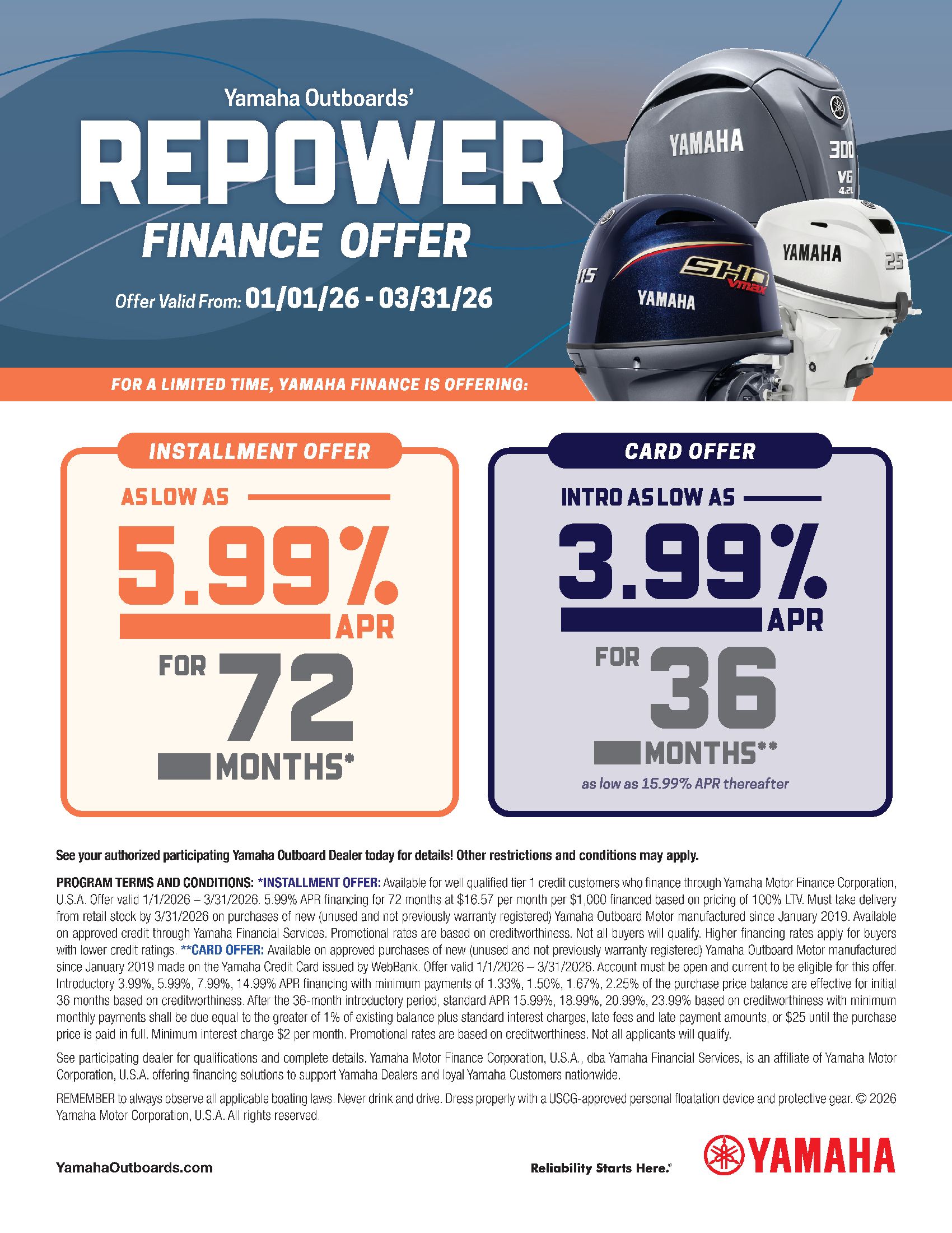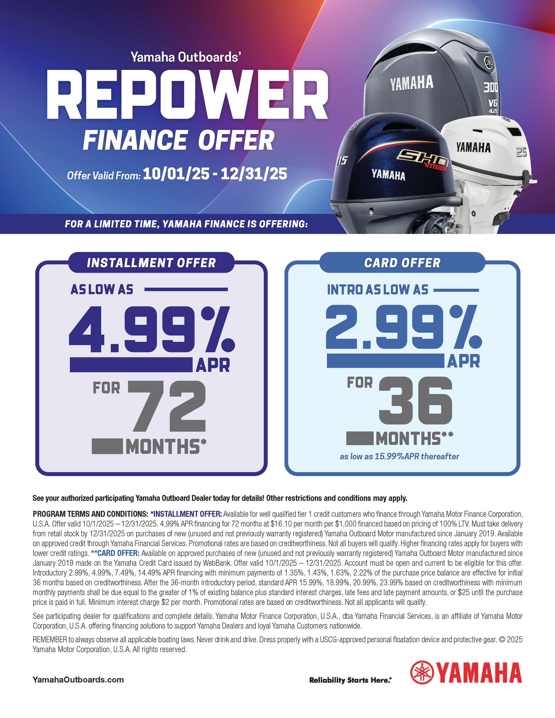 Yamaha offers a full line of outboard motors for all applications.